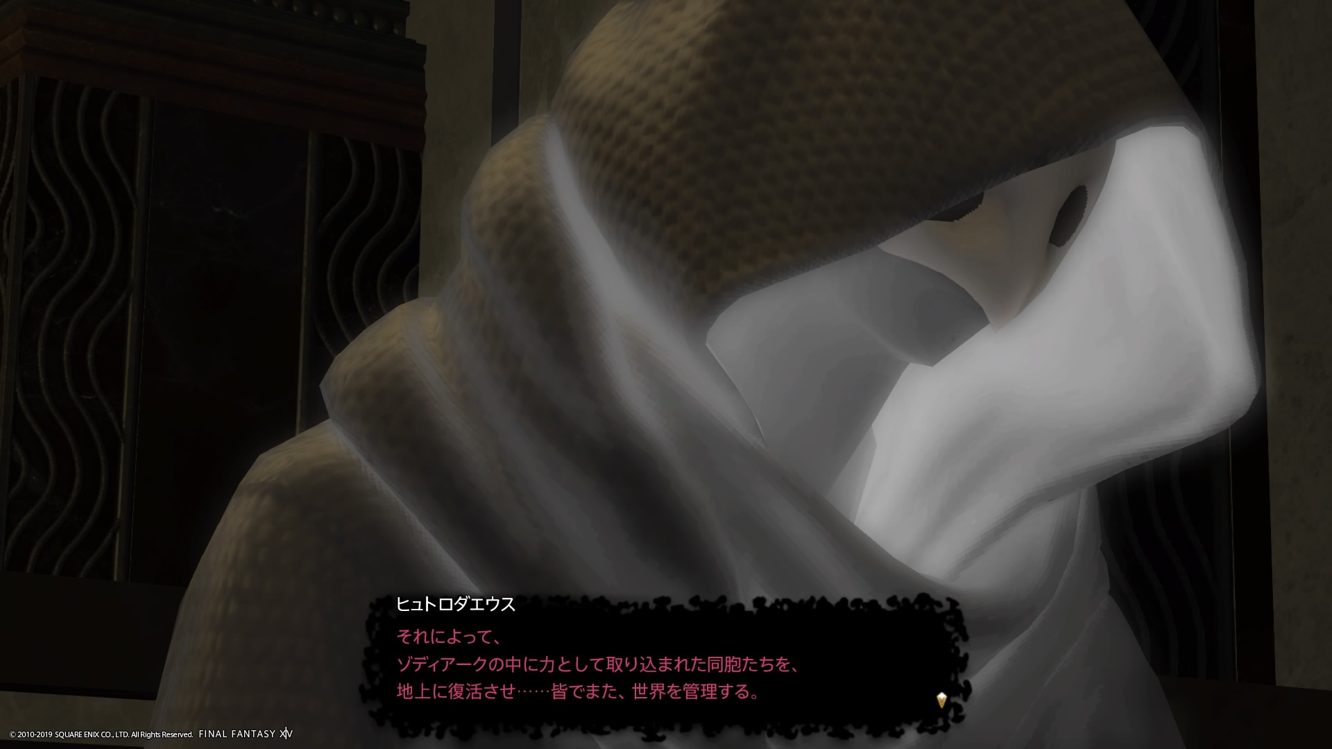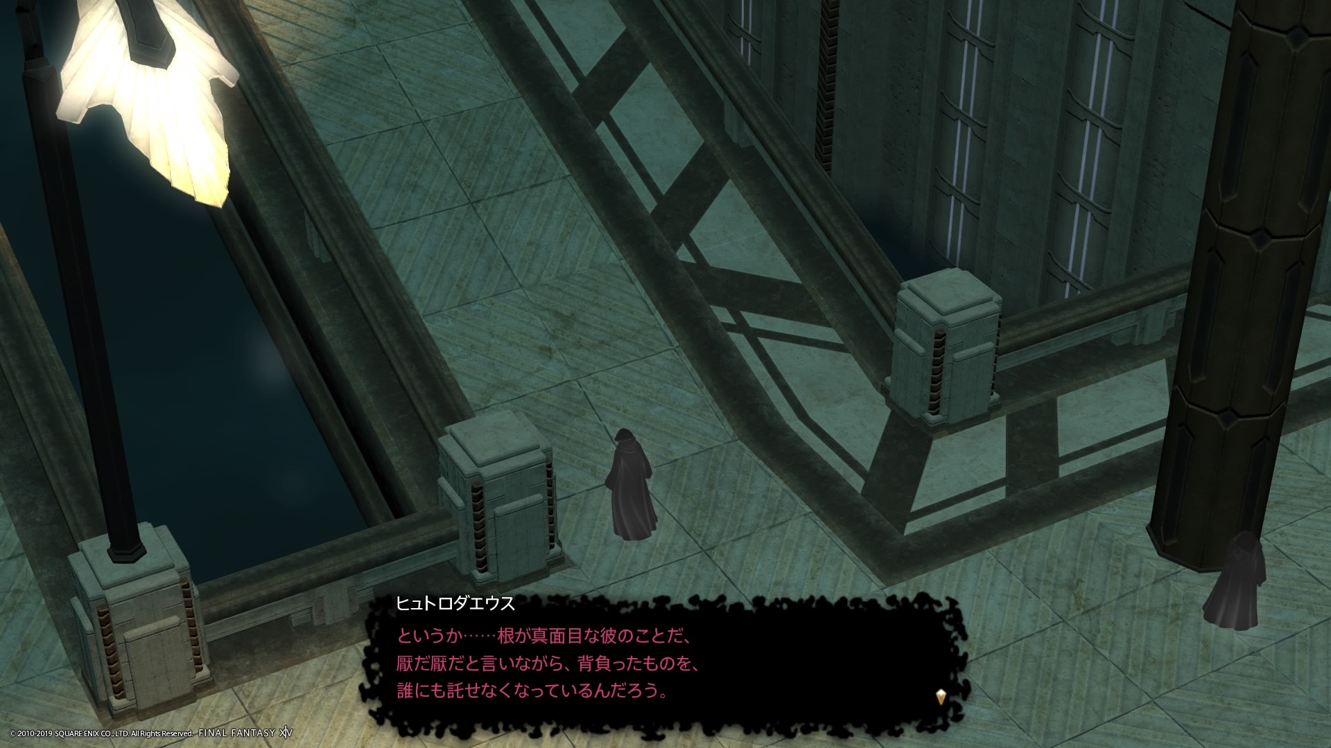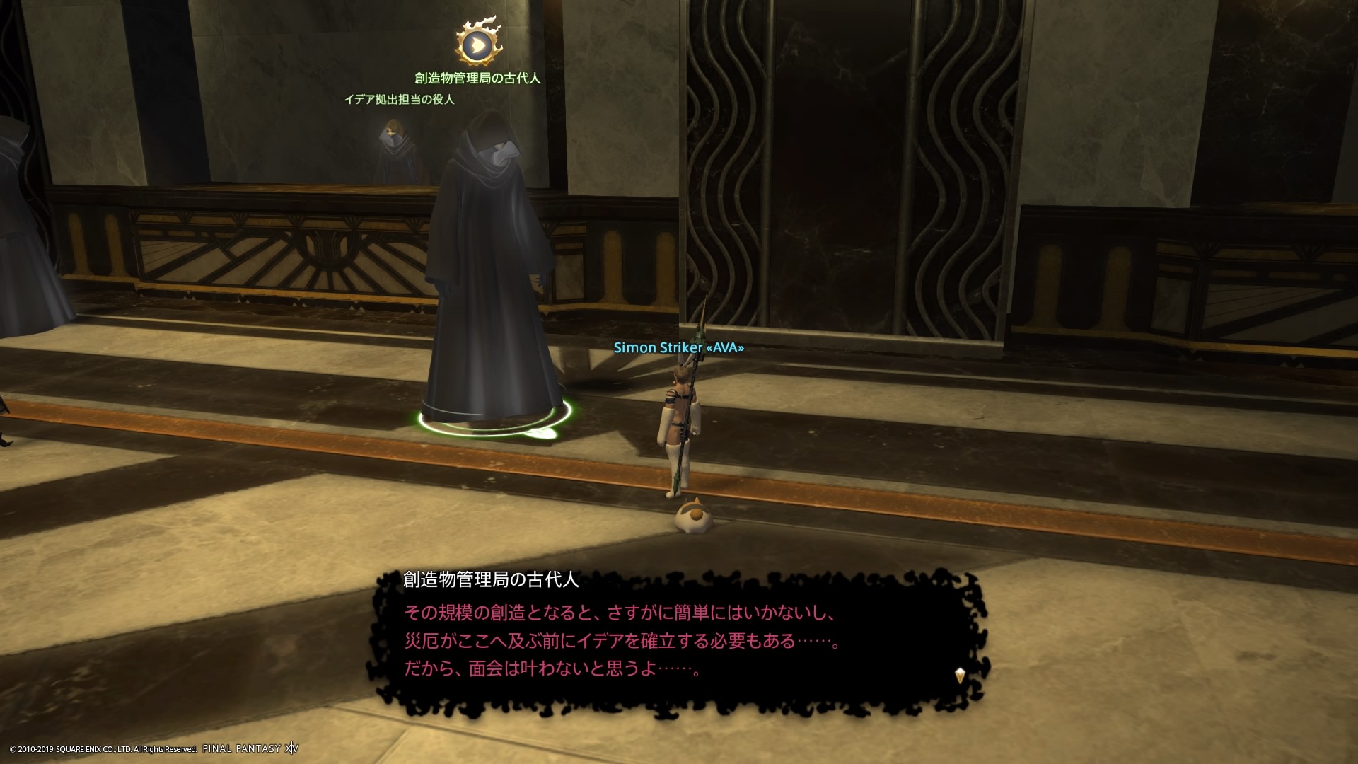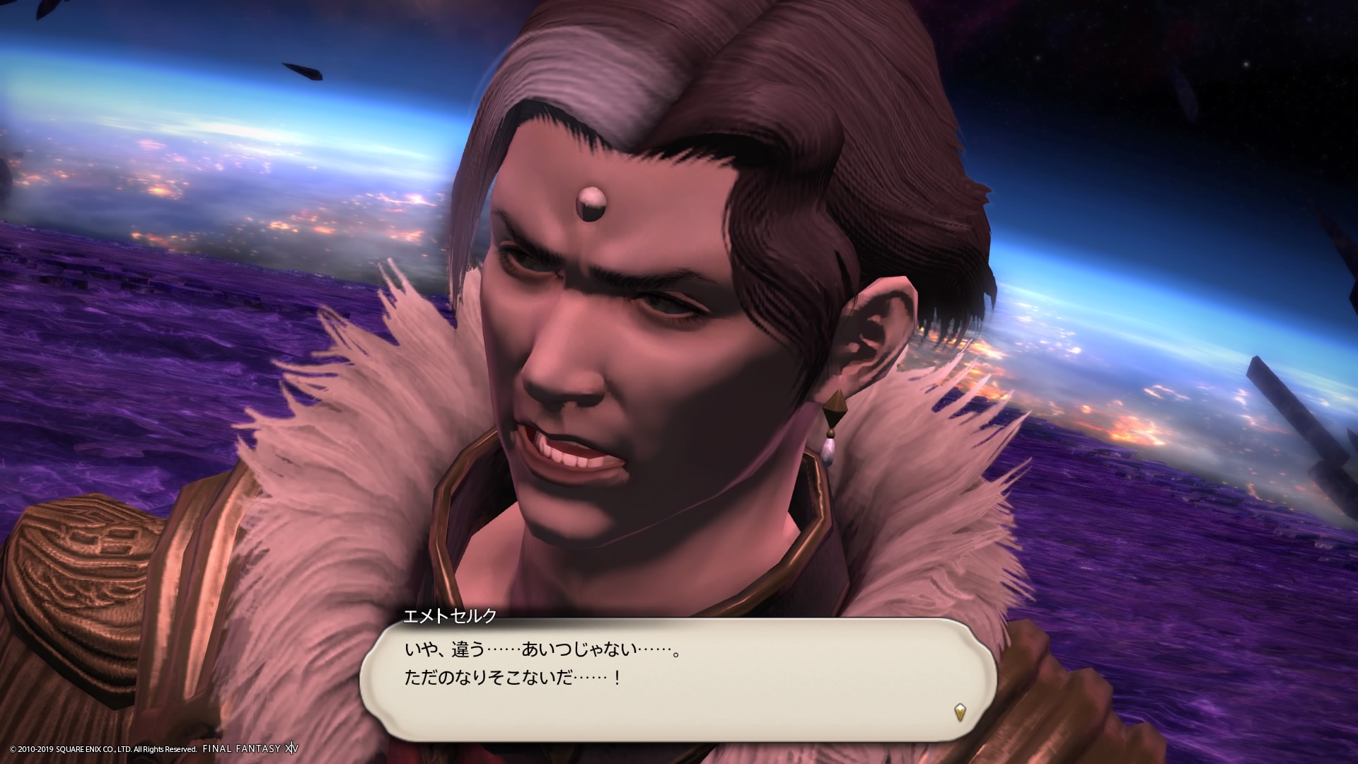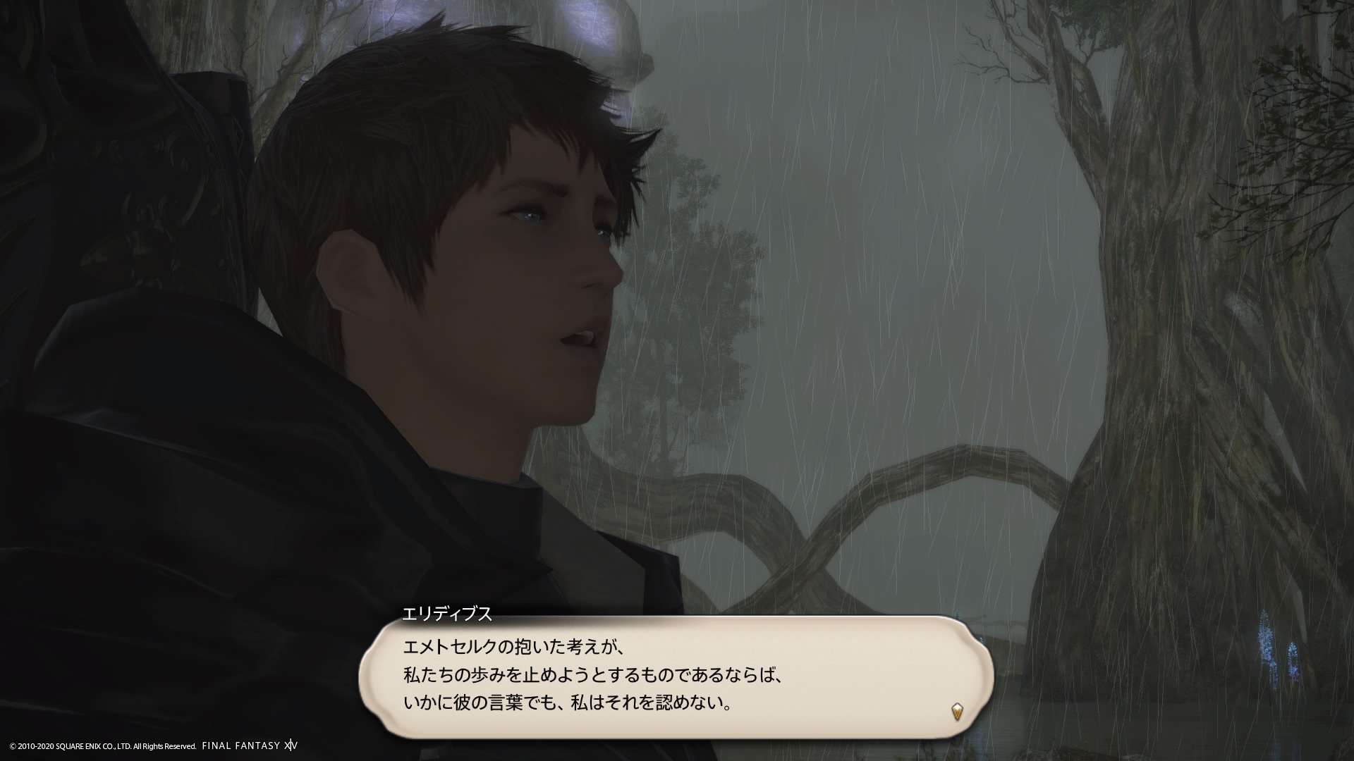 あまりの演技の下手さに思わず後ろからシバきに来た演劇大好きエメトセルクおじちゃん。