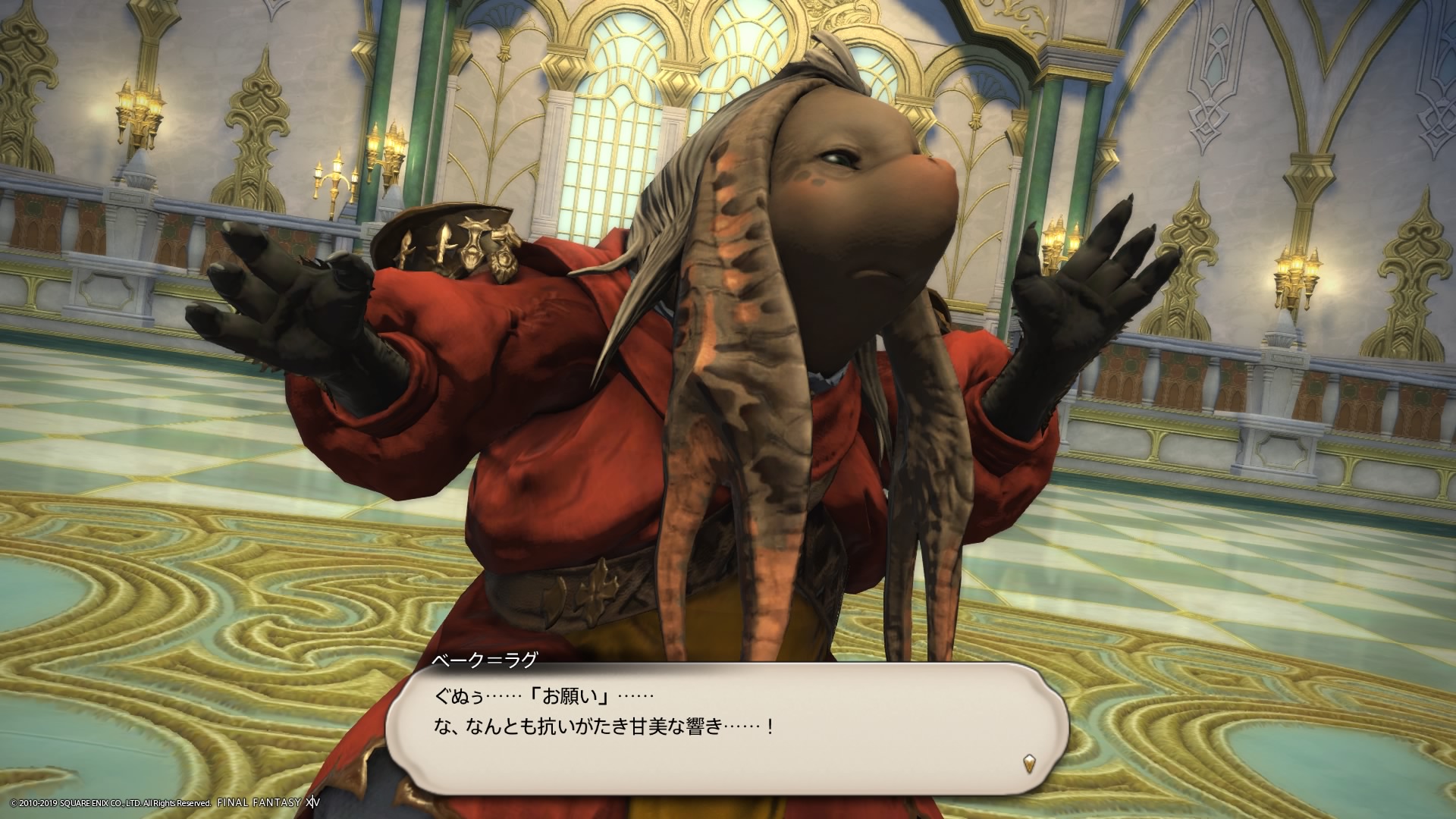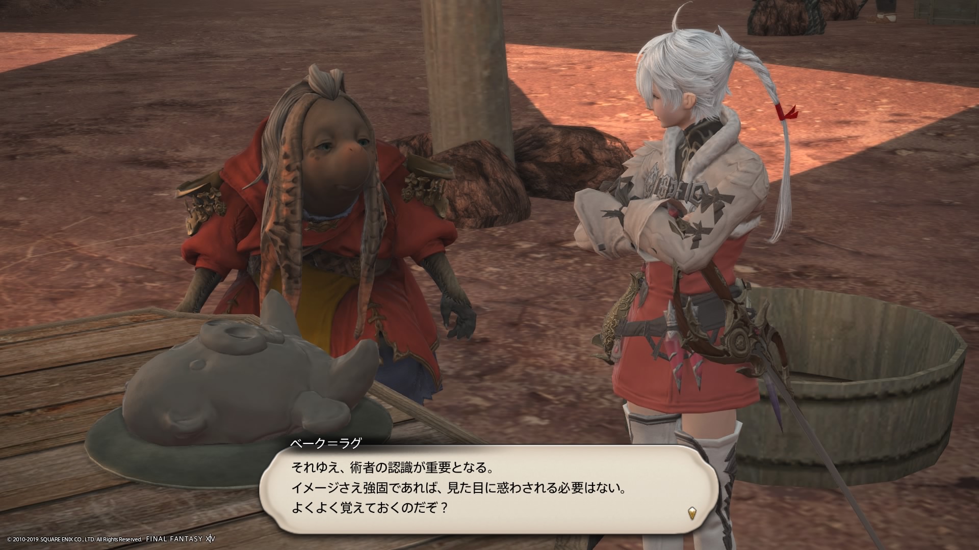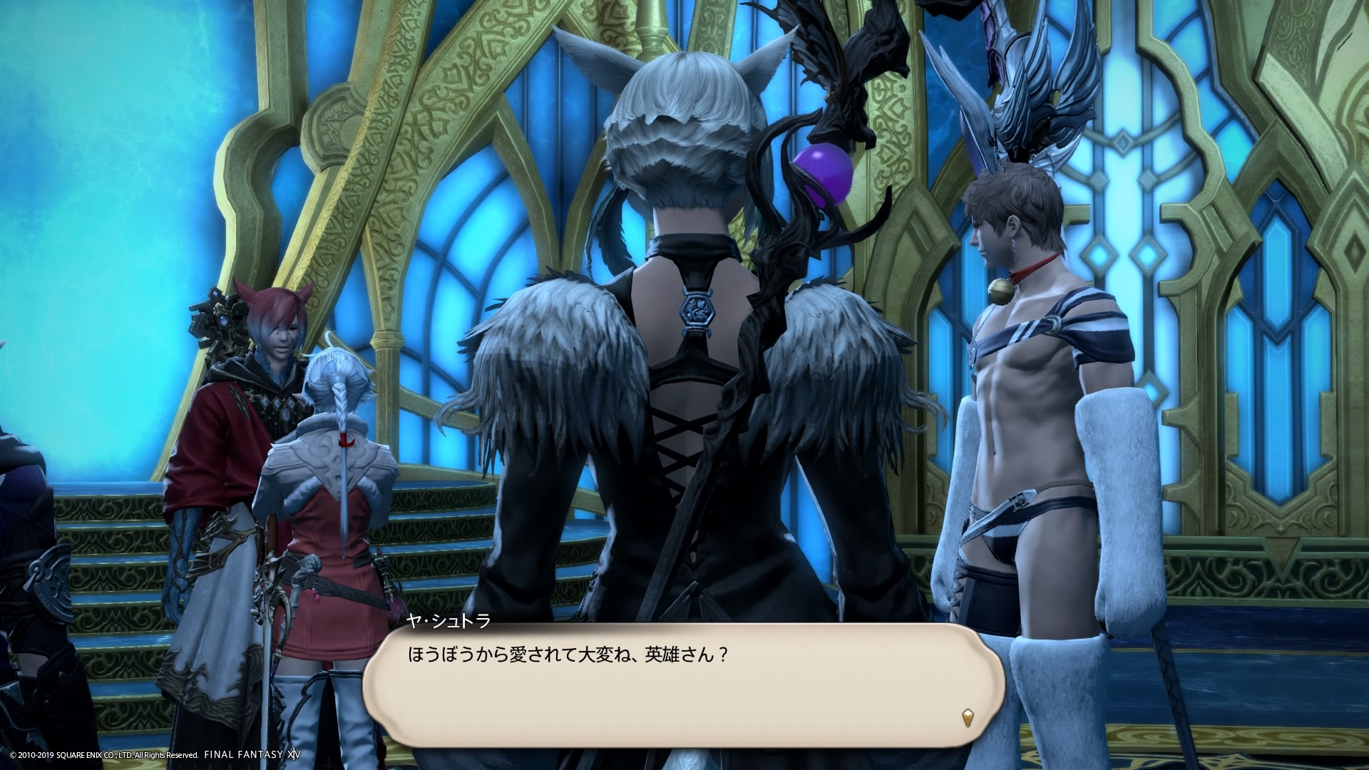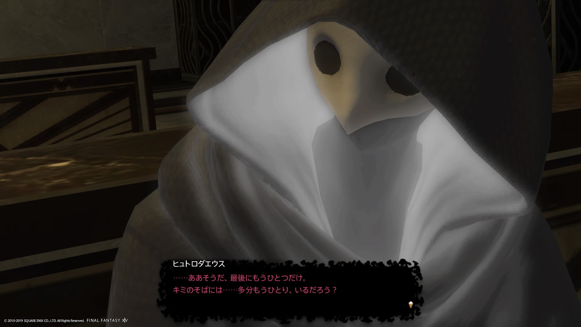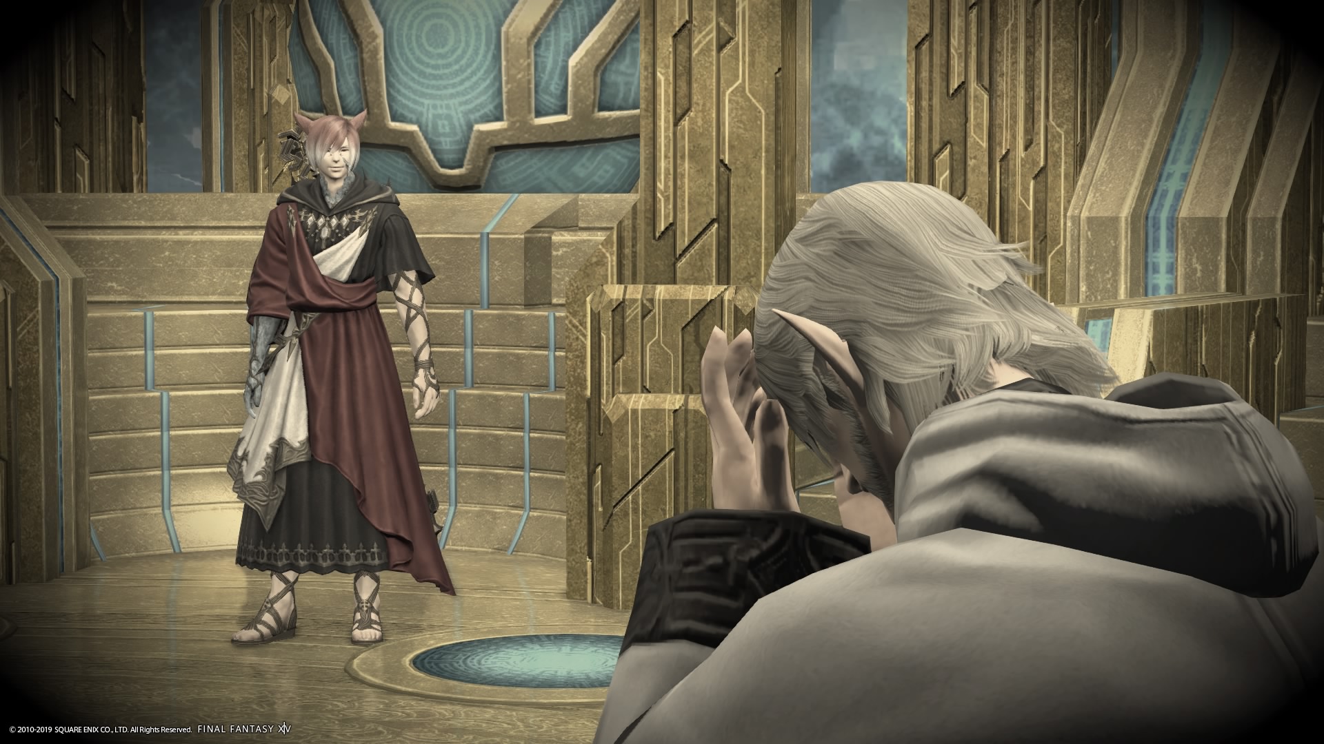 あまりの演技の下手さに思わず後ろからシバきに来た演劇大好きエメトセルクおじちゃん。