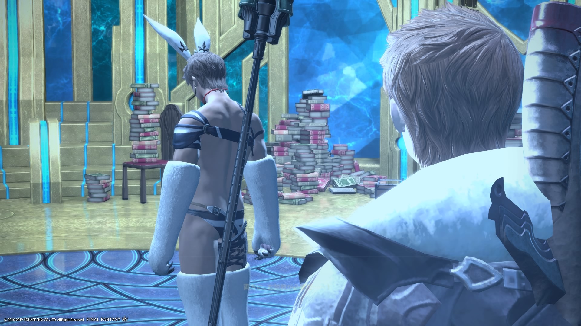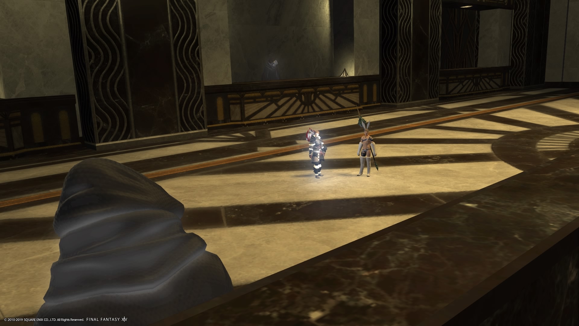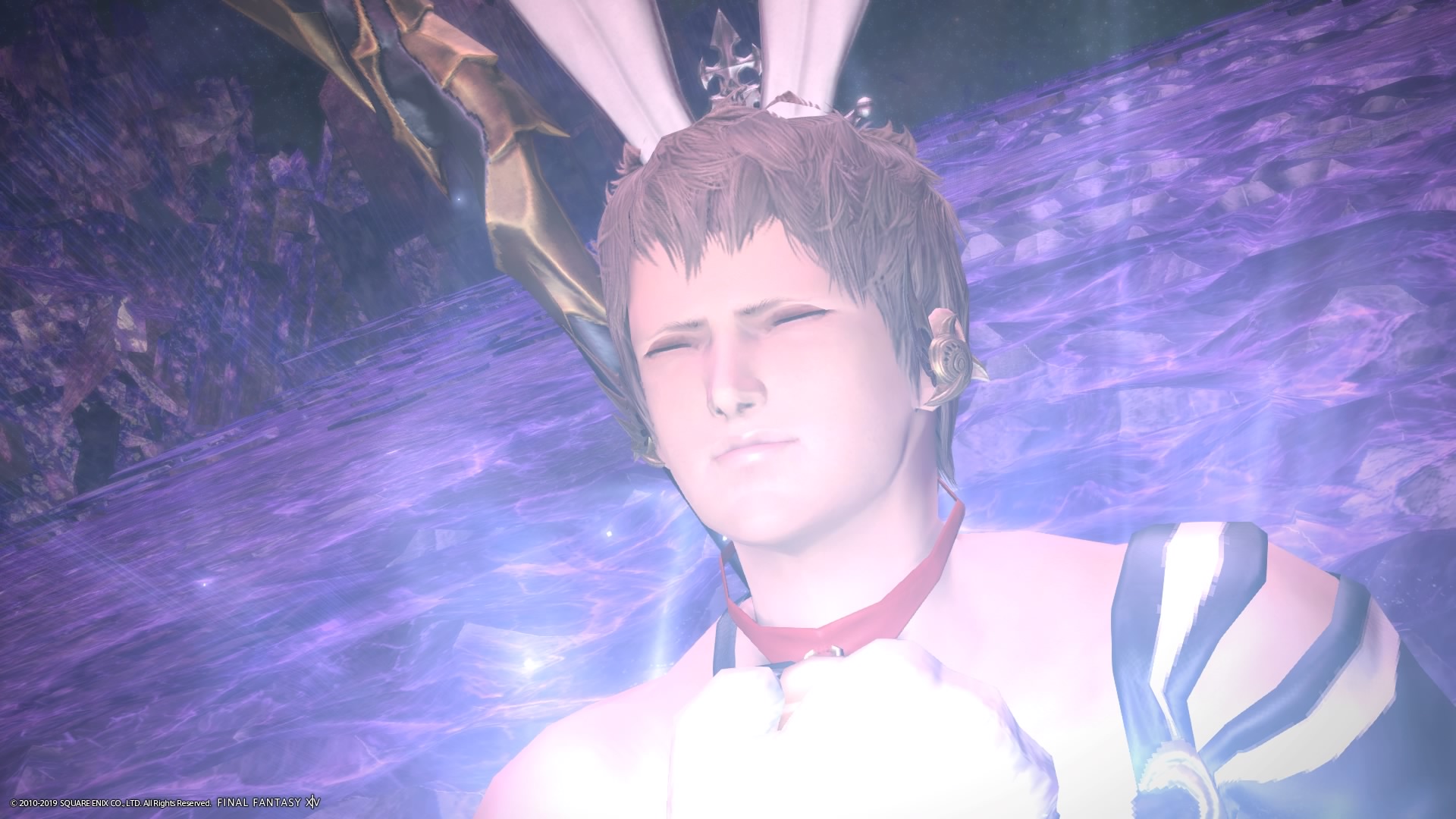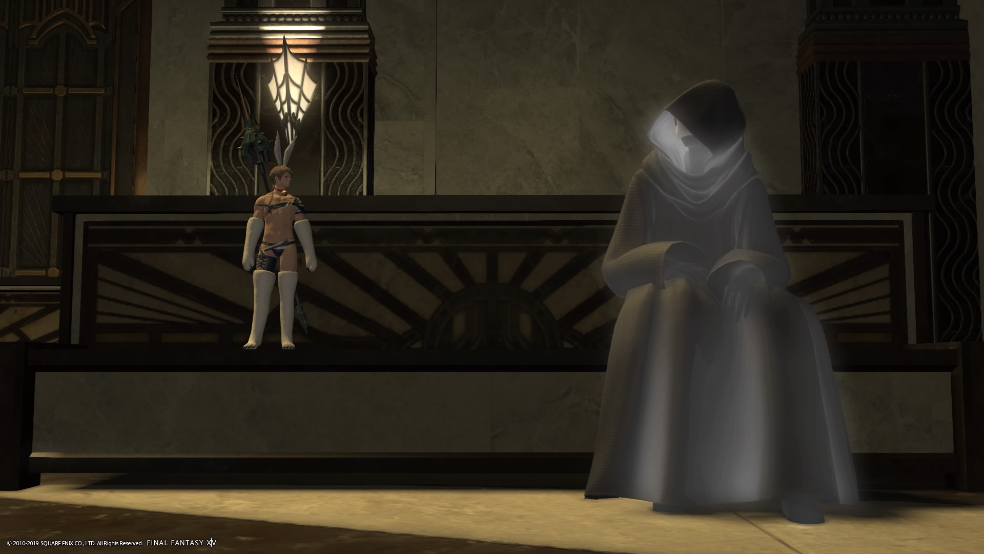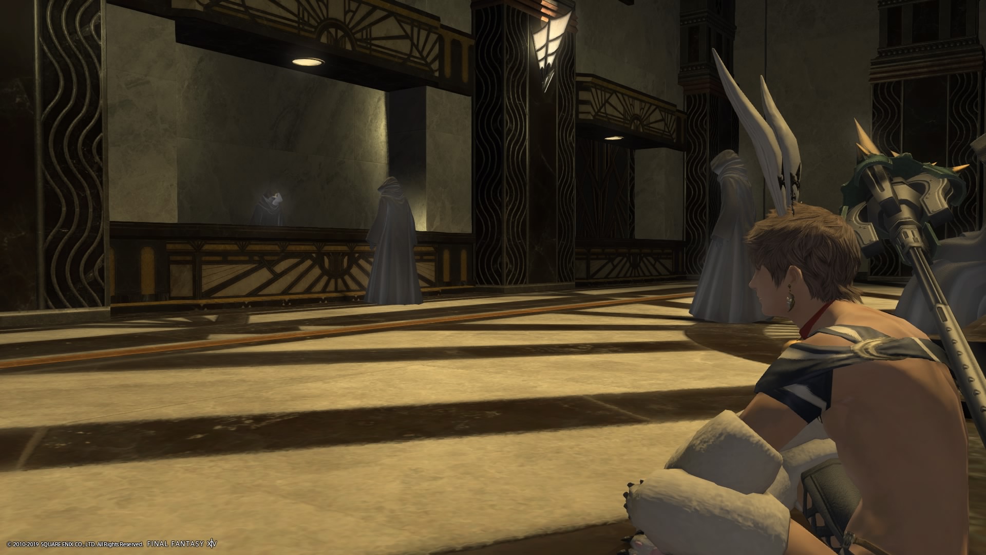 あまりの演技の下手さに思わず後ろからシバきに来た演劇大好きエメトセルクおじちゃん。